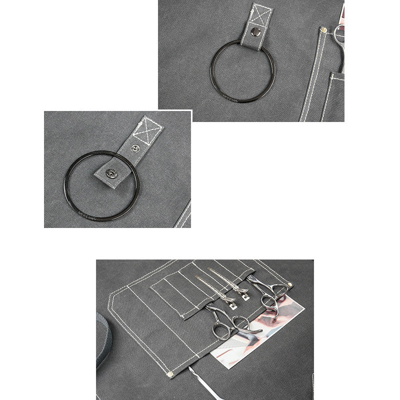 Cross-back Canvas Apron Gray Cafe Barista Bartender Pastry Restaurant Uniform Khaki Florist Barber Hairdresser Workwear