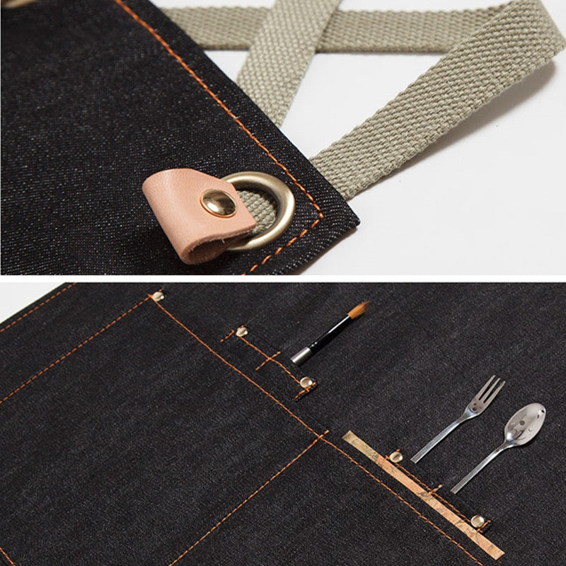Cross-back Kids Denim Apron School Painting Crafting DIY Class Drawing Baking Cooking Clothes