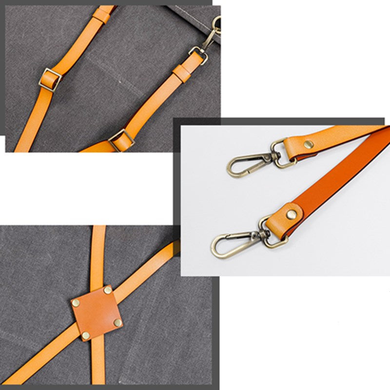 Gray Canvas Apron Cross-back Leather Strap Florist Hairdresser Barber Workwear Barista Bartender Pastry Chef Uniform